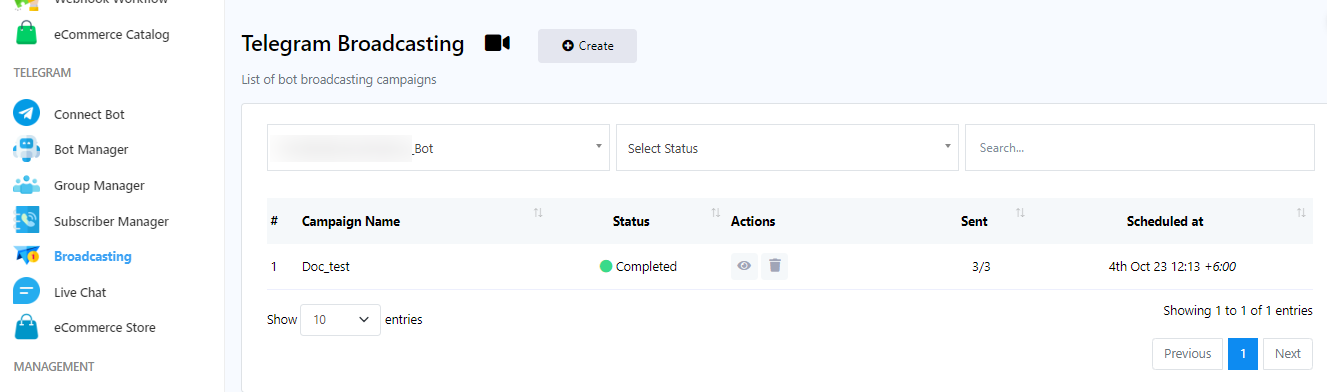 3. You can check Status, Targeted number of subscribers, Message Count and Sent report here.
