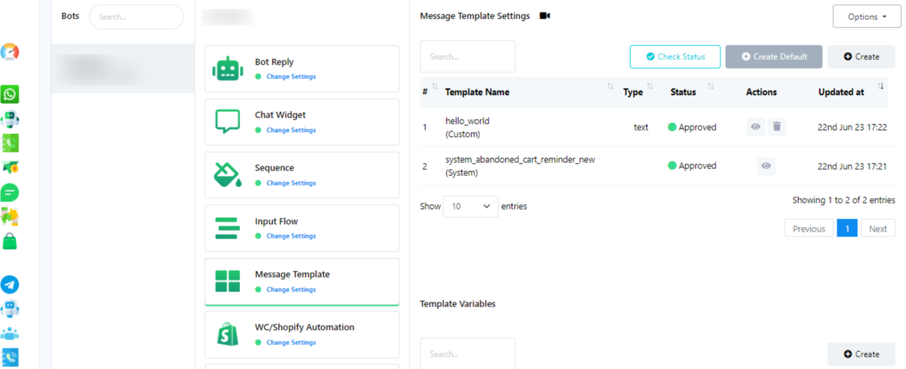- Go to WaselBot Dashboard and navigate to the Bot manager section.